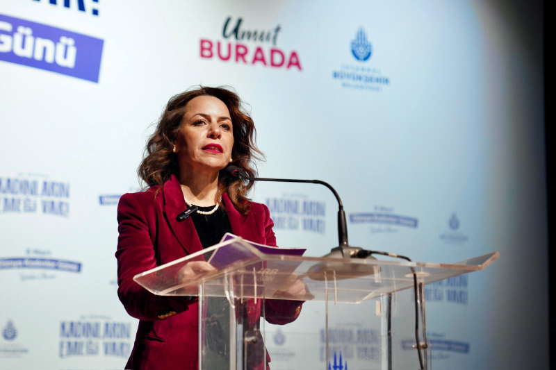 Aslan, konuşmasının devamında Silivri’de tutulan Ekrem İmamoğlu’nu anarak, “Sizlere, hukuksuzca Silivri Zindanında tutulan Cumhurbaşkanı adayımız, İstanbul’umuzun seçilmiş başkanı, muhafızı Sayın Ekrem İmamoğlu’nun selam ve sevgilerini getirdim. Ekrem Başkanımız İstanbul’un kadınlar için eşit ve güvenli bir kent olması için çok emek verdi, mücadelesini hala sürdürüyor” dedi.